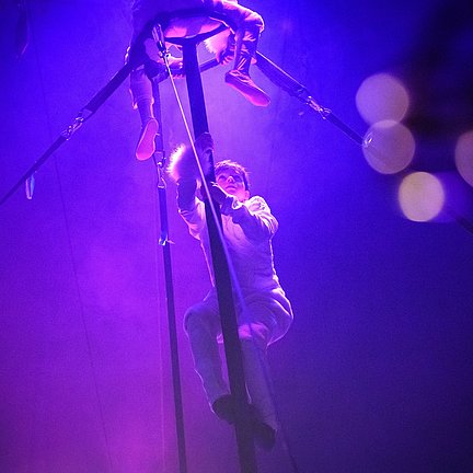 Mit »Träumchen« zeigt das Zartinka Mini-Ensemble eine Zirkusproduktion mit 36 Kindern zwischen acht und zehn Jahren. Schlafwandelnde Kinder balancieren ihre Vorstellungen durch die Nacht über ein Drahtseil, während schwebende Vertikaltücher sich von der Wirklichkeit lösen und zu geheimnisvollen Wesen werden. Das Stück verwebt Bewegungstheater und Musik zu einem Erfahrungsraum, in dem das Unmögliche leicht wird und das Alltägliche sich verwandelt. So entstehen Räume, in denen Fantasie Gestalt annimmt. »Träumchen« lädt in eine Welt ein, in der Kinder Grenzen verschieben, neue Möglichkeiten entdecken und andere dazu einladen, weiterzuträumen.